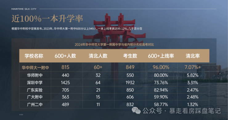 1、引入华中师大教育集团办学,学校连续六年排名全国第一,清北摇篮 (广州第一的华师附仅排名第十五),近100%一本升学率