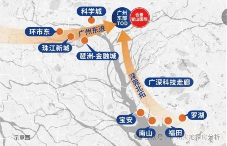 项目位于增城区的永宁街和黄埔区永和板块的交界处,广州东TOD旁边。