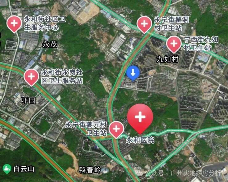 周边有南方医院和广州东部医疗中心(总投资10亿),永和医院(广州医学院第一附属医院医疗技术指导医院)。