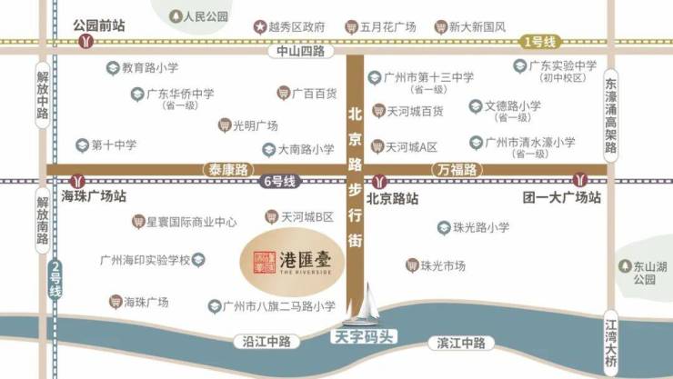 北京路,作为广州千年中轴线起点,政商文教资源在此汇聚,天河城、广百百货等商业中心簇拥,老字号云集,千年繁华,举步即享。