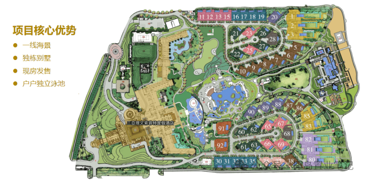 全维顶配环伺,悦享国际度假生活: 项目坐享海棠湾全球顶级酒店群(亚特兰蒂斯、艾迪逊等)、三亚国际免税城、高端医疗、高尔夫球场等成熟配套。既可享受社区宁静,又能便捷融入国际化的繁华度假生活圈,满足多元度假需求。