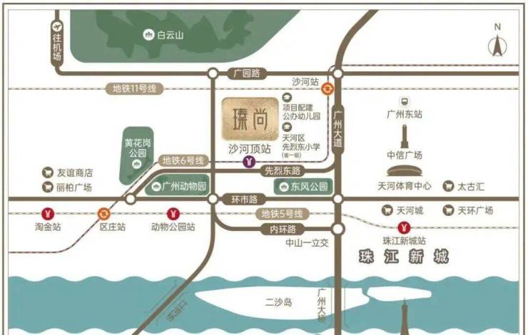 三地铁交织(5/6/11号线),距离6号线沙河顶站B出口约500米,1站至沙河站换乘广州大环线11号线,2站至区庄站换乘东西大动脉5号线。3站淘金,6站北京路、珠江新城。