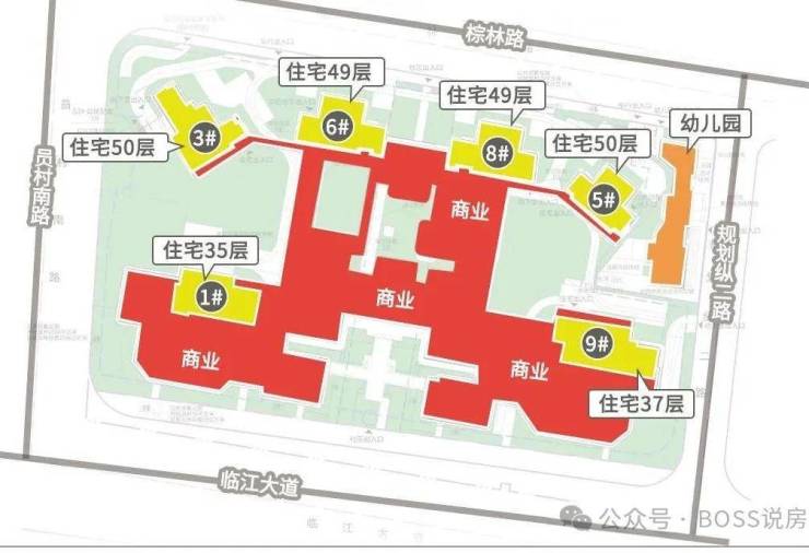 容积率:综合容积率3.33,南地块约3.1,北地块约3.8