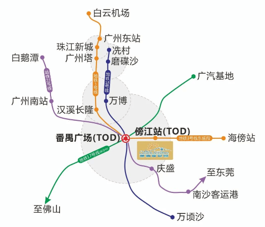 紧邻 3 号线东延段傍江站 TOD,1 站达番禺广场,畅达万博 CBD、广州南站、琶洲、珠江新城等,5 地铁串联,交通超便捷🚇