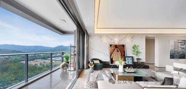 西派云峰使用大面积玻璃幕墙与极简铝板精妙配比,外立面展现出通透大气的立面效果,让每一户都能将窗外的山景最大化,使得业主坐在客厅就能一览白云山景。