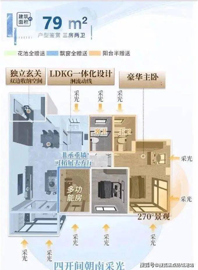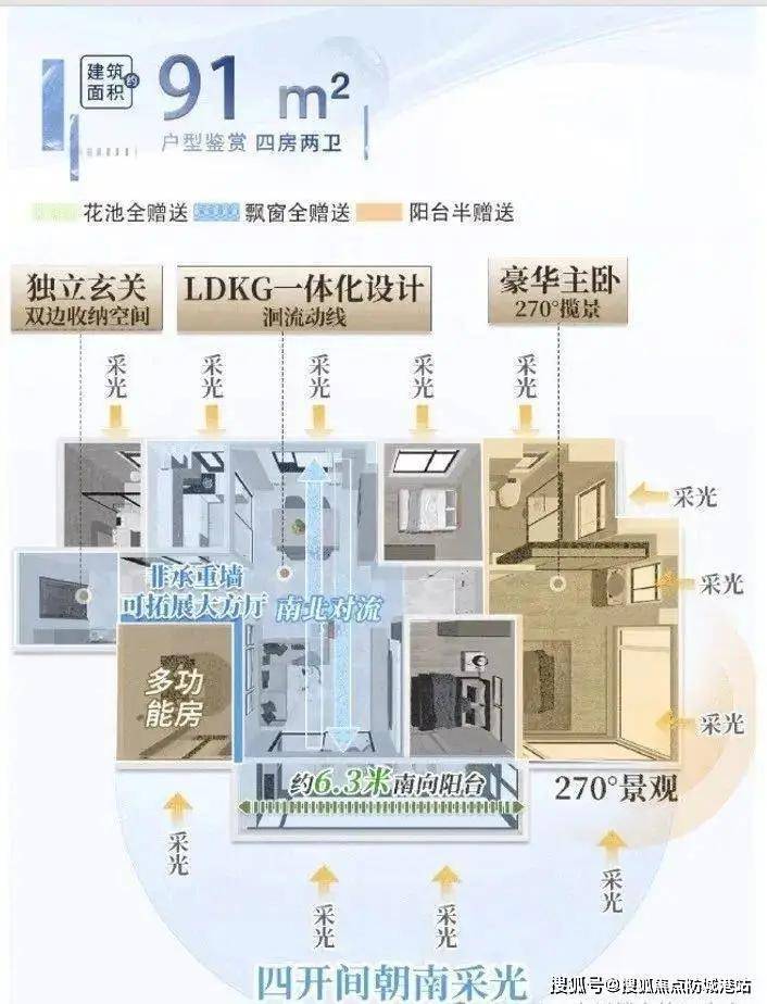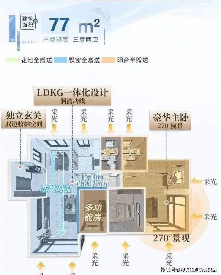 约77-91㎡三至四房,全屋双卫,南北通透,极致采光。