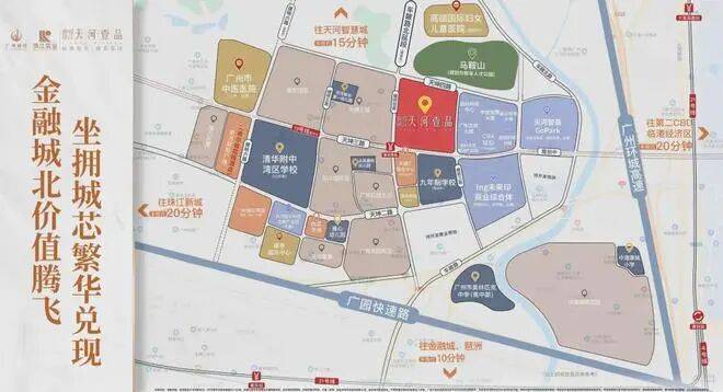 4大商圈:珠江新城商圈、天河城-太古汇商圈、金融城商圈及东圃-奥体商圈环伺。约50米天河智谷科技金融产业园(建设中),将打造集购物中心、大型生鲜超市、巨幕影院、美食餐饮、健身房及恒温标准泳池等为一体的城市商业综合体。