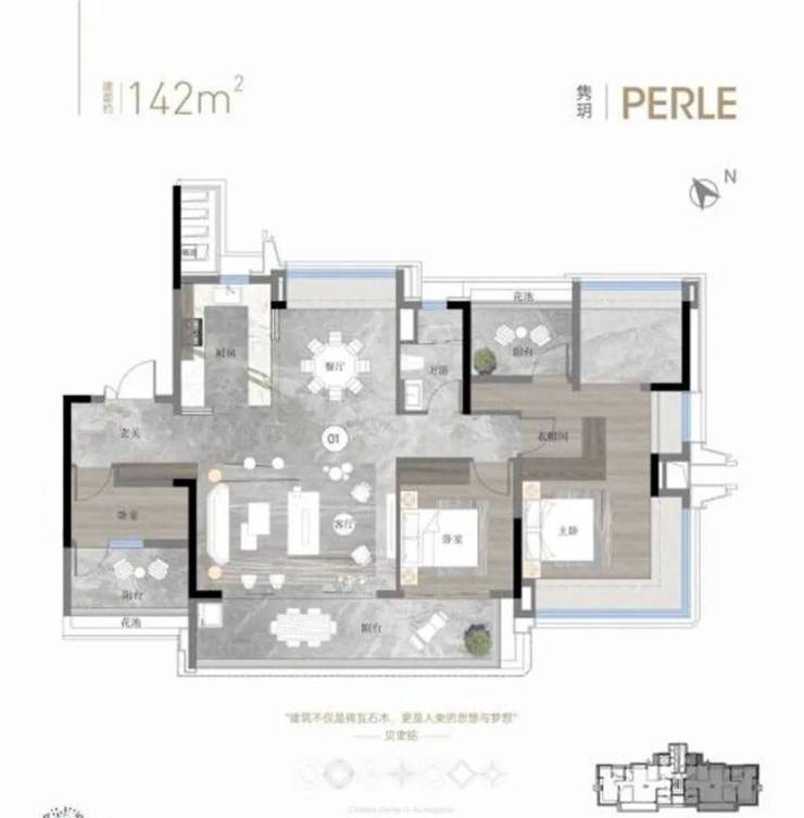 其中20#、21#的142平延续了一期的经典格局和品质,在飘窗采光面、空间尺度等细节之处做了迭新升级,打造板式楼栋设计,独梯独户的豪宅私密性,并加强了三面采光、实现了餐客厅、主卧的南北对流。