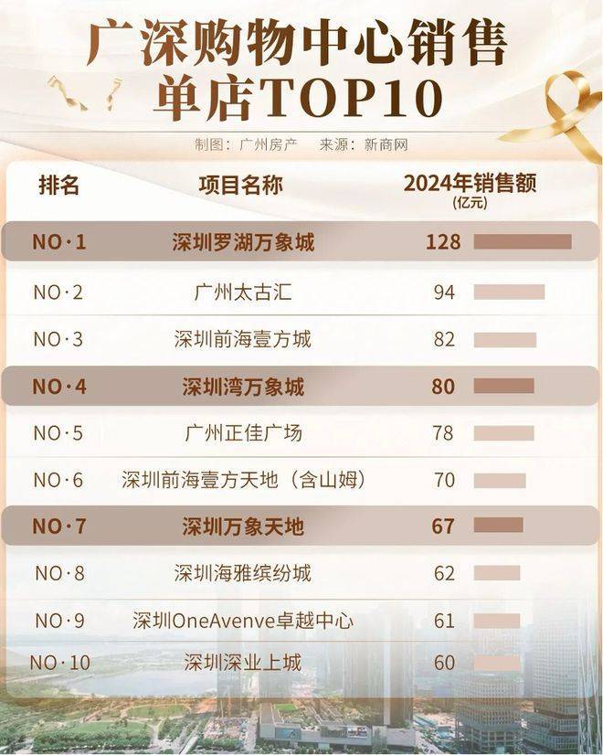 2024年广深商场销售额,前五里面万象城占了2座,深圳罗湖万象城更是华南第一。建面约19万㎡的白鹅潭万象城将极大提升城市商业格局,是4条地铁交汇的TOD,2万方的滨水公园也由华润运营。