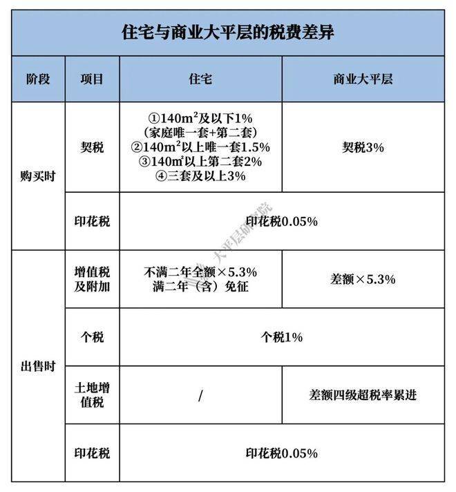 大平层购买时契税3%,印花税0.05%。出售时印花税0.05%、个税是差额×20%、增值税是差额×5.3%,土增税也是差额计算。因此不增值的话,差额为0,就不用交税。