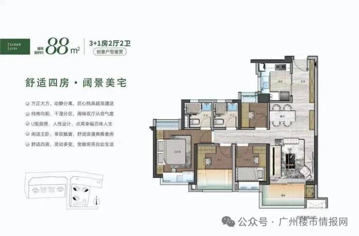 一期3栋户型有72-88-105都是四房户型