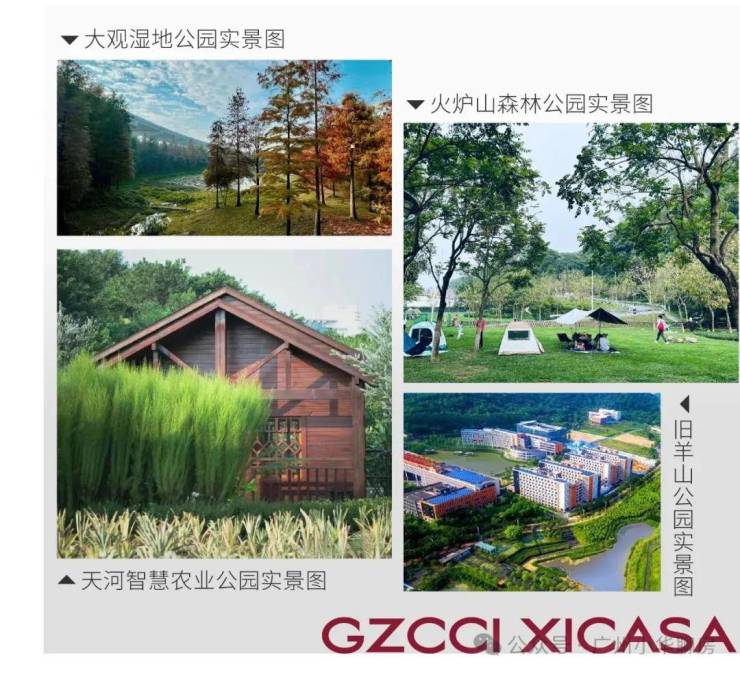 紧邻广州第一个海绵城市湿地公园—大观湿地公园、火炉山森林公园、天河智慧农业公园、旧羊山公园,鲜氧环绕,清新自然和咫尺繁华难得同享。