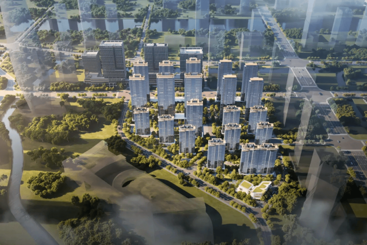在广州琶洲CBD,保利天奕以“都会绿洲谧屿”为概念,重构城市与自然的对话关系。三块地连片开发一体化设计,将社区编织成一片低密绿洲。