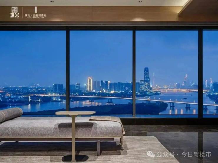 其户户采用环幕式落地窗,实现270°无遮挡的观江视野,珠江风景与室内空间无界相融。