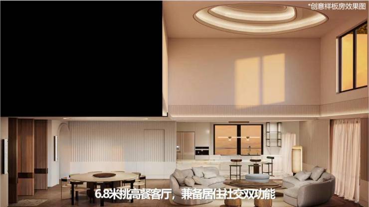 约3.4米层高、约6.8米挑空餐客厅