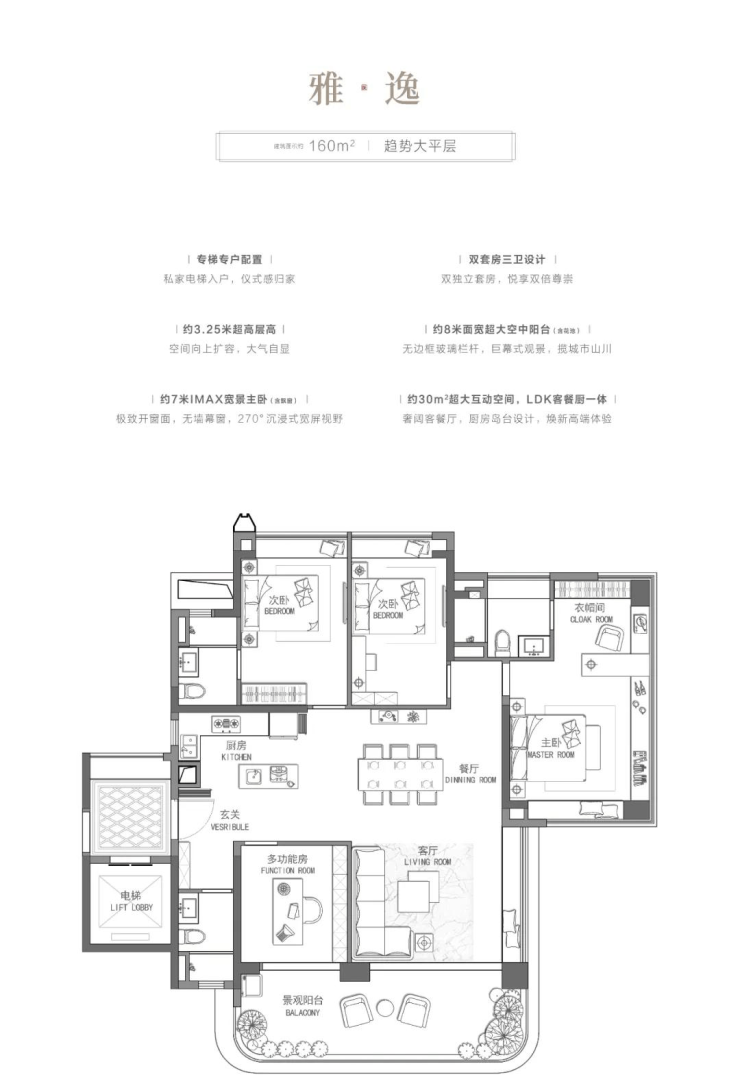约3.25米层高,观景、家政各有分区;