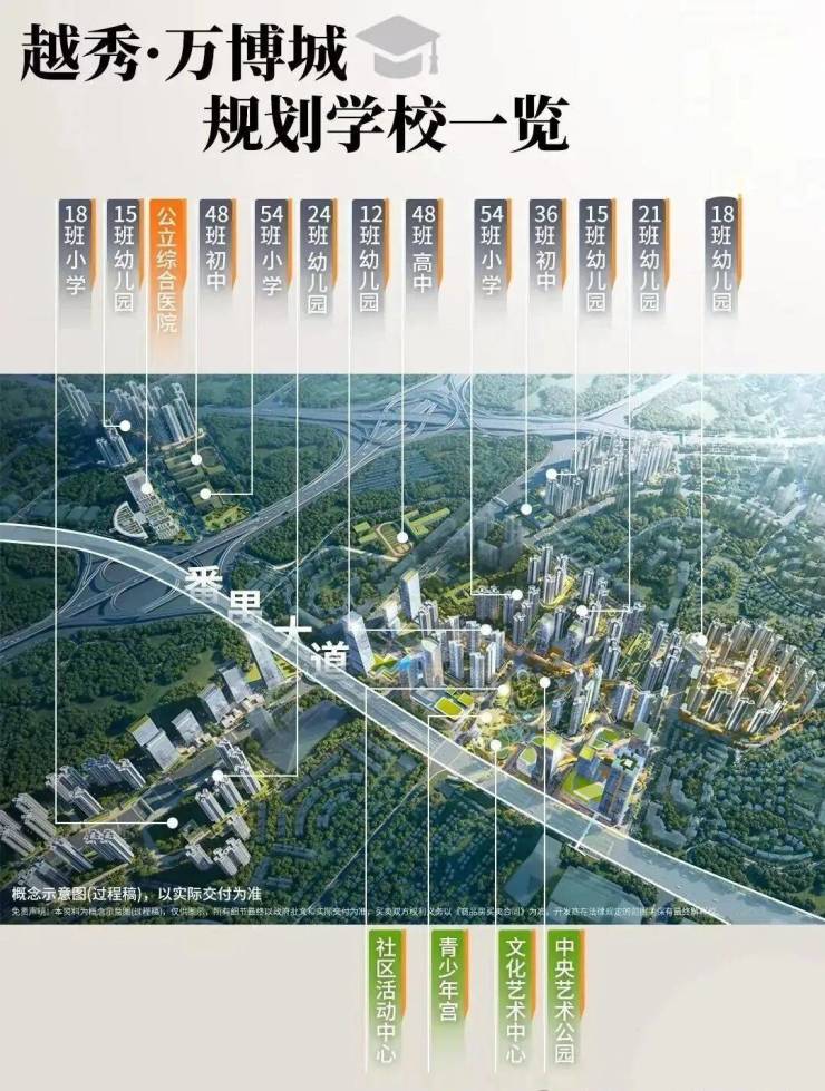 54班小学为里仁洞小学原址改扩建,36班初中为越秀地产新建开学。