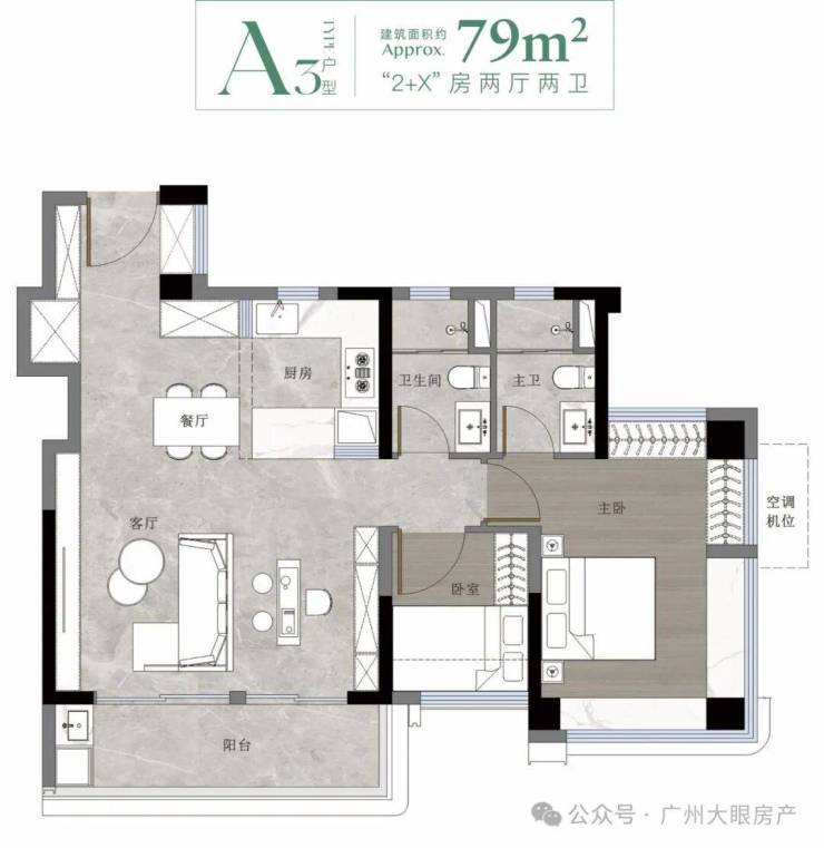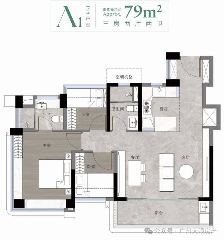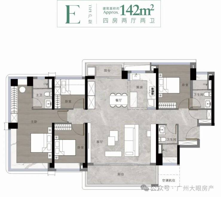 建面有约:79平三房两卫,94平三房两卫,108平双套间四房两卫,142平双套间四房三卫,项目使用率超100%,所有户型均为南向