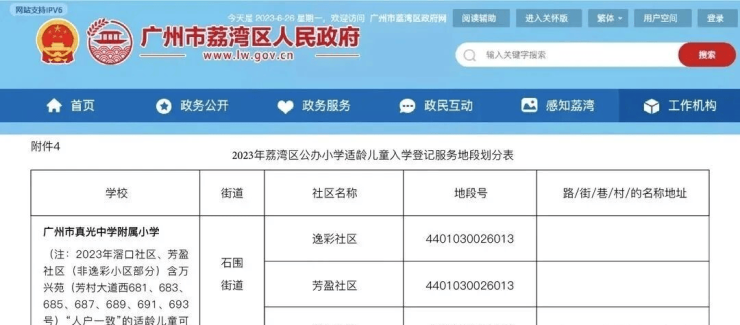 属于广州市真光中英文小学的学区划分之内,初中大概率划分到广州四中。