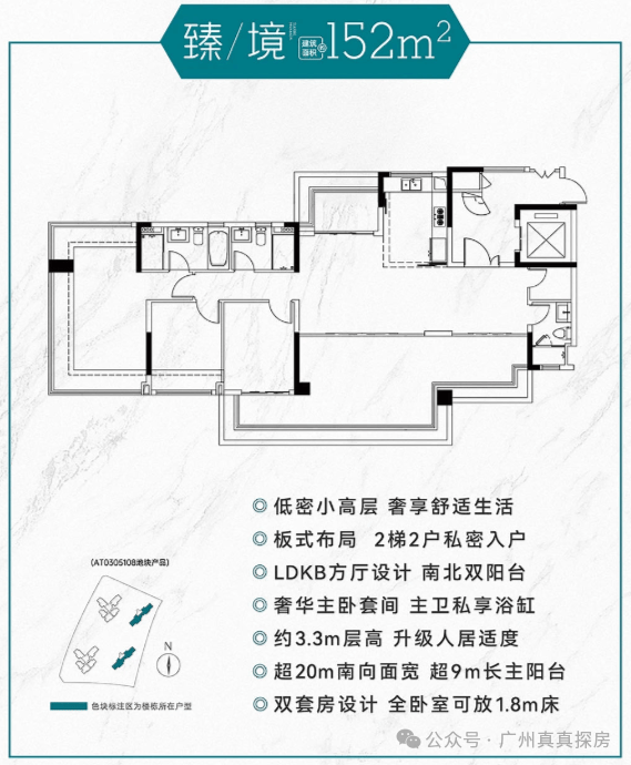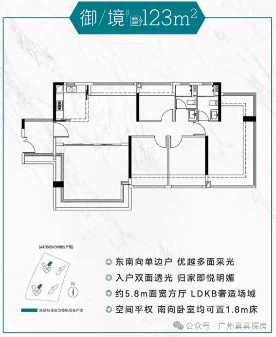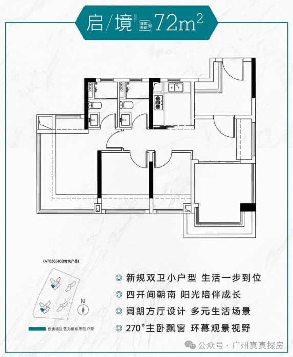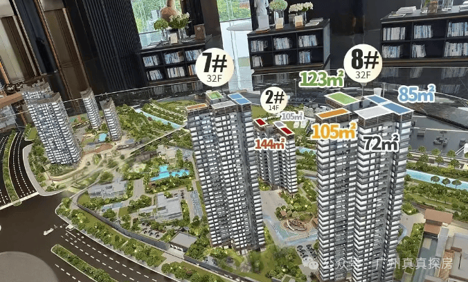 首推建面约 72 - 152㎡户型,户户朝南且高使用率,约 72 - 123㎡户型分布在 3 栋、4 栋,约 152㎡户型分布在 1 栋、2 栋。72㎡的小户型卖得最好,是天河刚需救星,性价比也确实高。目前二期首开南面的1、2、7、8栋,这4栋均是超新过户产品,使用率120%左右,后续的楼栋可能使用率就没有这么高了。其中7栋和8栋是32层高2梯5户产品,1栋和2栋则是14层高2梯3户小高层。
