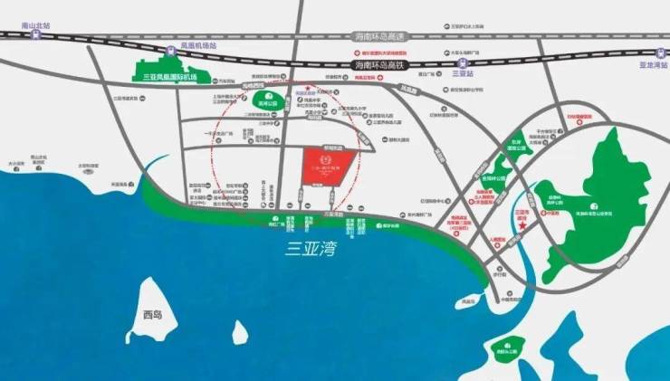多条城市主干道纵横,约10分钟抵达三亚凤凰国际机场,约20分钟抵达海南环岛高铁三亚站、约10分钟海南环岛高速机场互通。