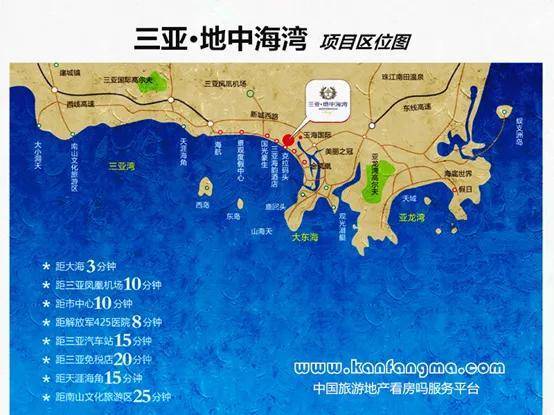 约30分钟内达“天下第一湾”亚龙湾,5A级景区南山寺,天涯海角,大小洞天,西岛等;
