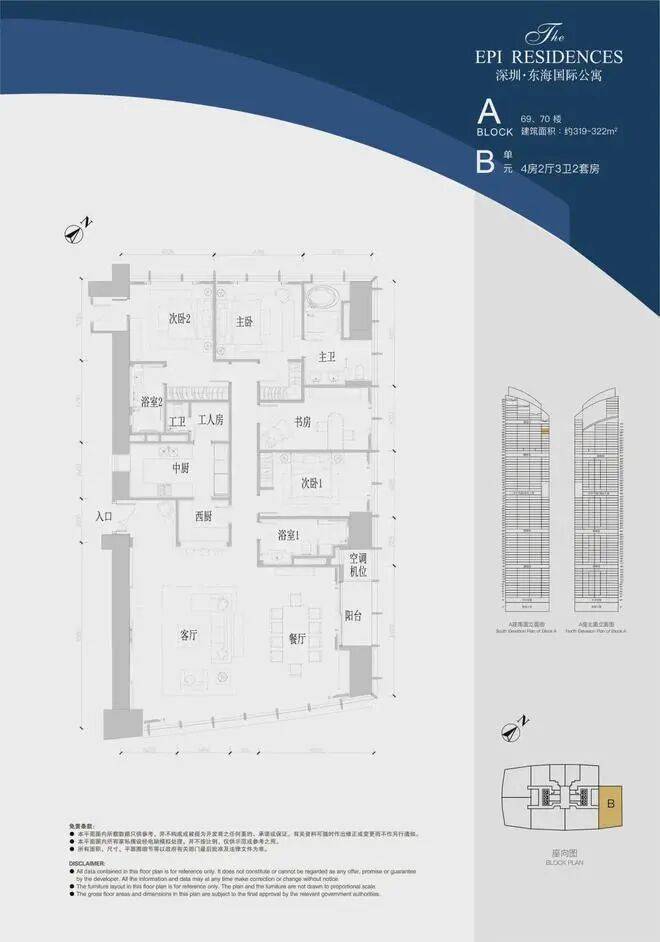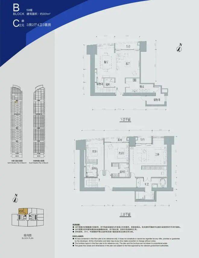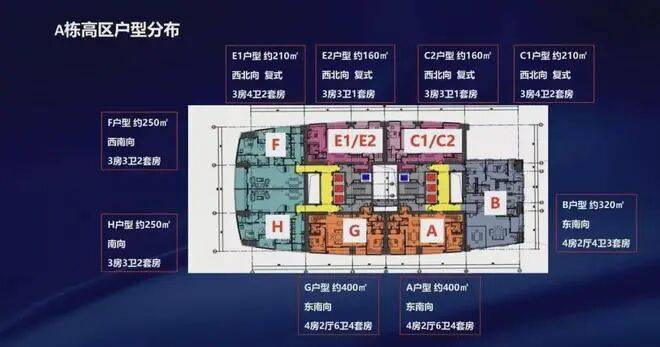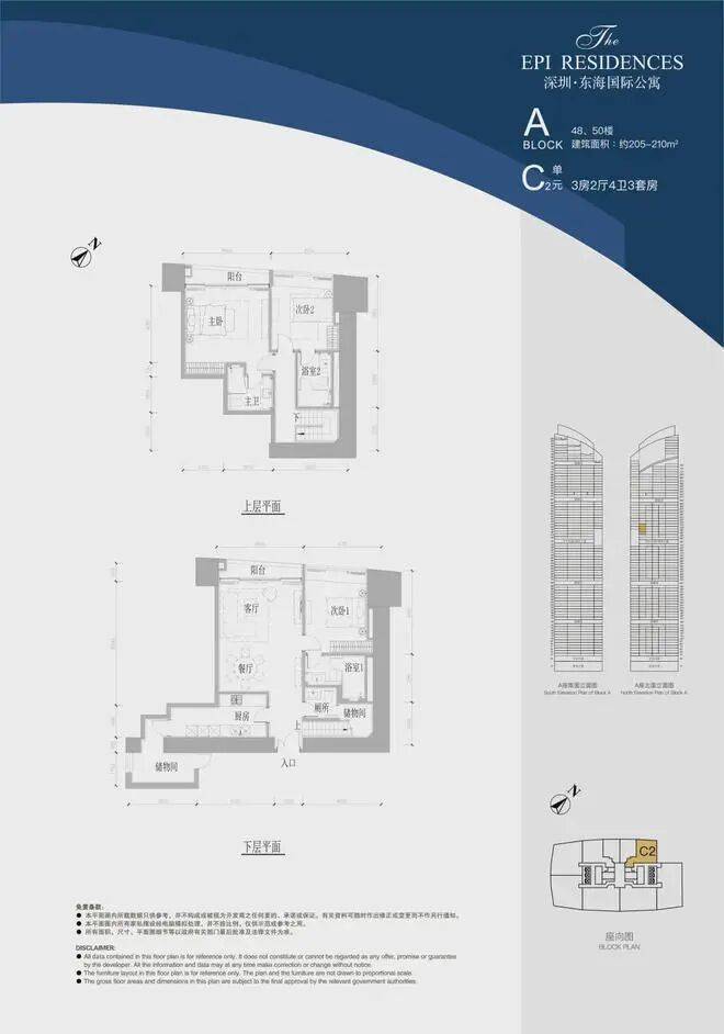 A座48层C2单位,建面约210㎡,3房2厅4卫3套房