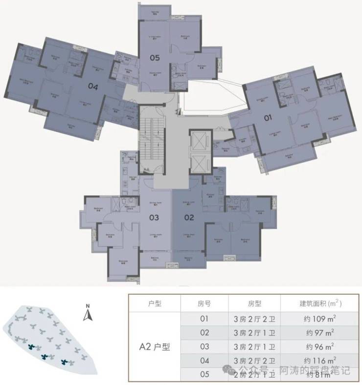 项目在售户型:在售19栋,户型建面约81㎡ 两房两厅一卫、96-97㎡三房两厅一卫、109-116㎡三房两厅两卫座向为南向和南北向