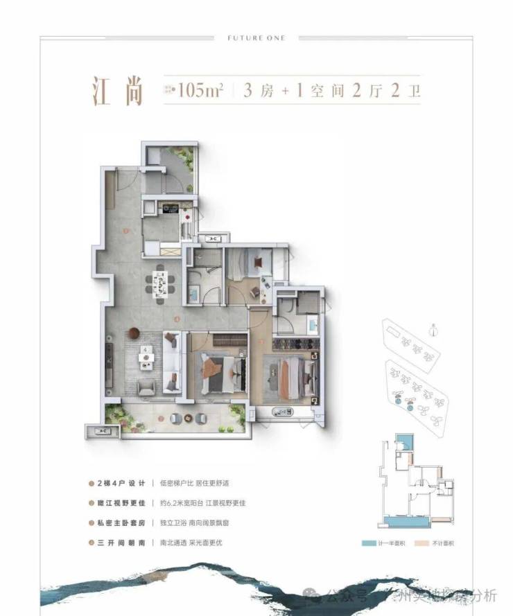 项目分为南北两个地块开发,其中北地块体量较小,只有3栋住宅+1栋21层商业楼,配少量底商而南地块体量较大,有9栋纯住宅,南侧为华宇凤凰岛的产业园区,这里的中高层户型有希望望江。