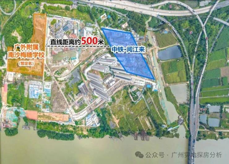 开发商携手广外教育集团共建一所54班(小学36班,初中18班)九年一贯制广外附属南沙梅糖学校暂定名,其距离项目仅约500米,2025年9月小学开学。2公里范围内聚集滨海实验学校南校区广大附中南沙实验学校、广州外国语学校附属学校等。