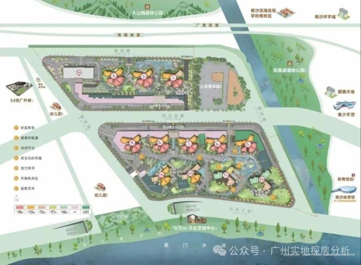 全架空层空间满足健身、交流、阅读、会客等。项目南瞰约600米宽蕉门水道,背靠约9.46万平方公里大山乸森林公园,窗前即赏滨江景观带(规划中)和凤凰湖湿地公园(建设中),紧邻南沙重点市政公园—蕉门公园。南沙规划展览馆、南沙图书馆、南沙体育馆、南沙青少年宫、南沙美术馆(规划)等。