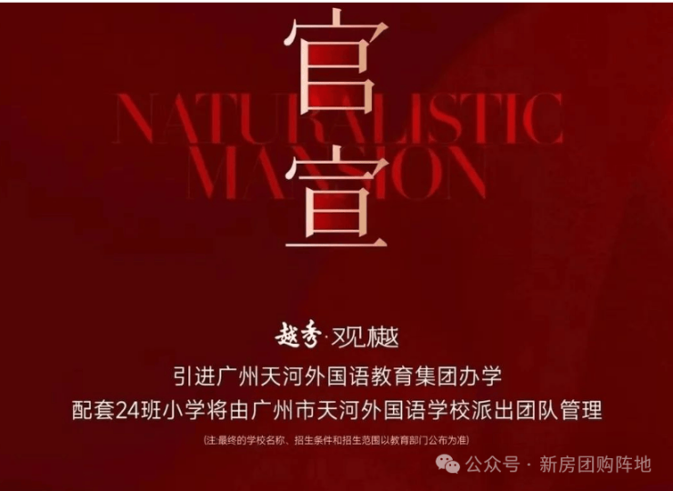 项目自配15班幼儿园和24班小学,项目4月份官宣将引进广州天河外国语教育集团办学,配套的24班小学将由广州市天河外国语学校派出团队管理。(注:最终学校名称、招生条件和招生范围以教育部门公布为准)