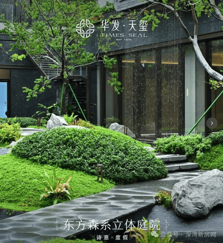 华发·天玺携手景观设计天团DDON笛东,以“东方森系立体庭院”为理念,打造一座可与自然对话的沉浸式园林。从叠溪流瀑到静谧水院,再到观景平台,形成“仰观瀑布,俯听溪声”的立体景观序列,营造出移步异景的森居体验。