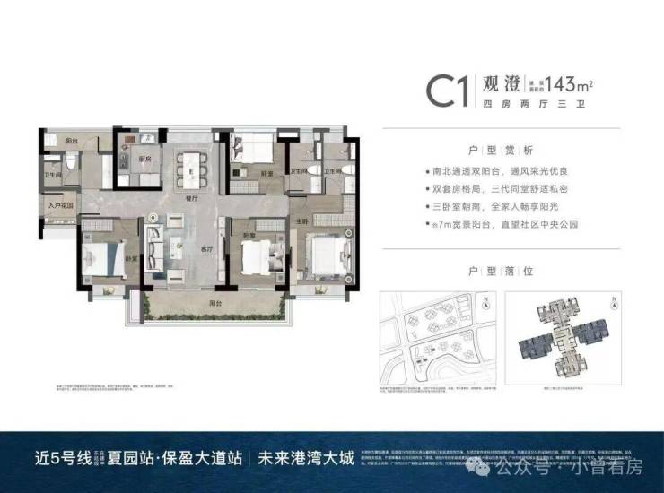 约123㎡南向4房,约143㎡南向4房,约93㎡北向3房。