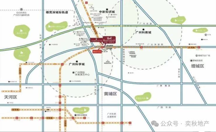 侨建·御溪谷地处广深科技走廊起始点的中新知识城南,地铁21号线与穗莞深城轨双线交汇之地,地铁口就在社区红线范围内,目前已全线通车。1站到镇龙,换乘快线2站地铁到天河(大观南路站),地段价值日益彰显。