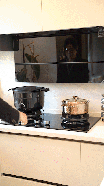 风力够猛,加上隔板阻挡,吸油烟效果很强。甚至,不用你动手,点开炉灶机器会有启动。