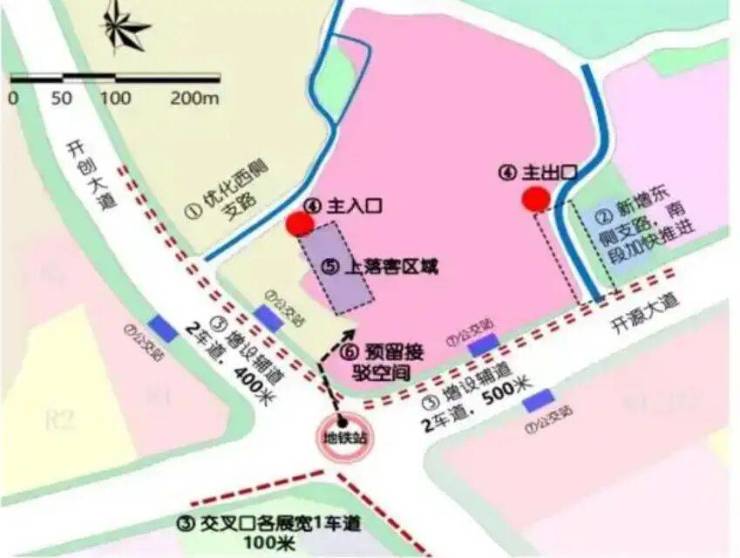 项目位于开创大道与开源大道交汇处,不靠近地铁站,大概2km,公共交通只能靠公交车来接驳。