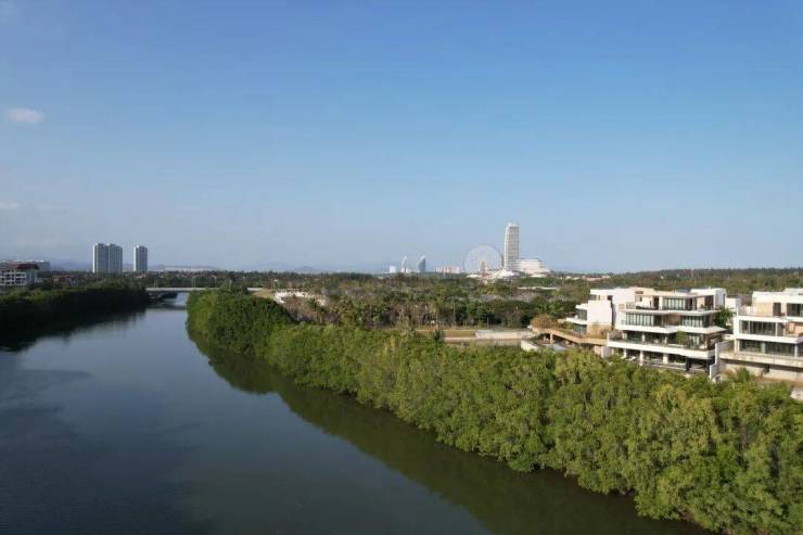自然格调:22公里海棠湾海岸风光旖旎,出门即享一线海景、椰林沙滩;约13.8公里原生态内河水系环绕,更有丰富的红树林湿地资源。
