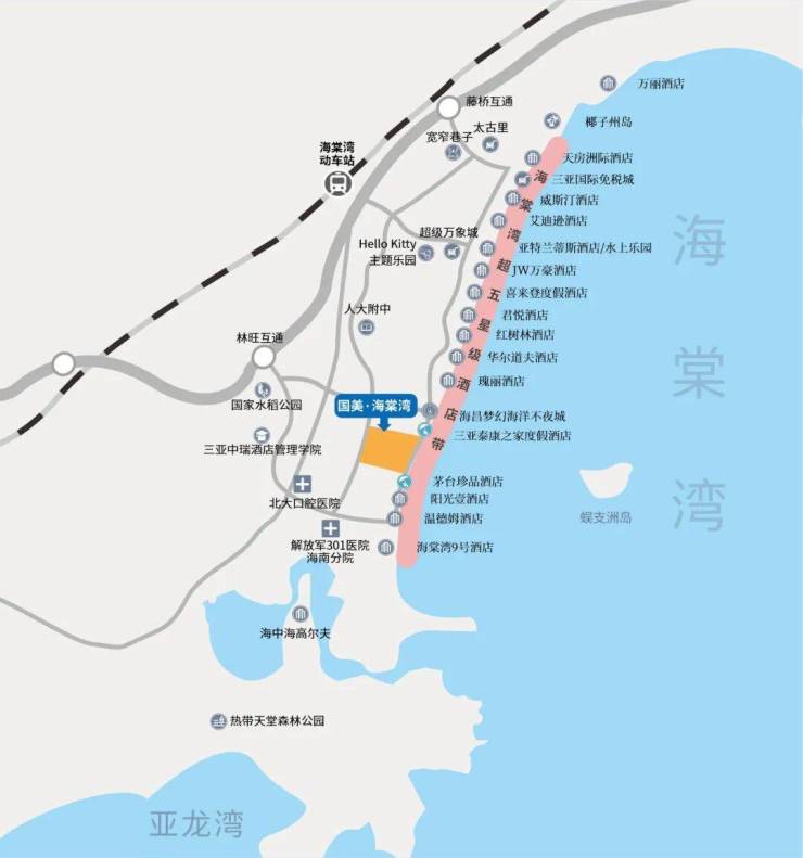 娱乐休闲:三亚国际免税城、海昌梦幻不夜城等,涵盖购物、娱乐、休闲、文旅多种类型,还有在建的 HELLO KITTY 主题乐园 。
