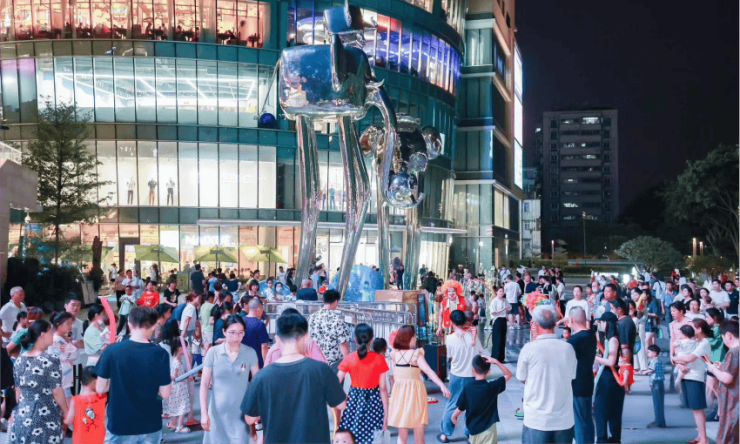 在场景焕新上,项目精心打造全维度特色空间矩阵:以沉浸式乐园体验为核心的西广场、可惬意漫游的户外外摆区、承载互动活动的一楼绮梦舞台、自带氛围感的负一楼星河下沉广场,还有散落于公共区域的休憩座椅;更有二三楼充满巧思的漫趣橱窗、可俯瞰风景的四楼云端天台,以及萌趣吸睛的小黄鸭IP主题城市乐园。这些场景共同构建起周边居民的专属“第三空间”,既是日常精神放松的休憩地,也是社交互动、碰撞生活灵感的活力场。不仅为区域注入全新活力,更以“现代与自然交融、时尚与烟火共生”的独特气质,助力塑造广州国际化都市的鲜活形象。