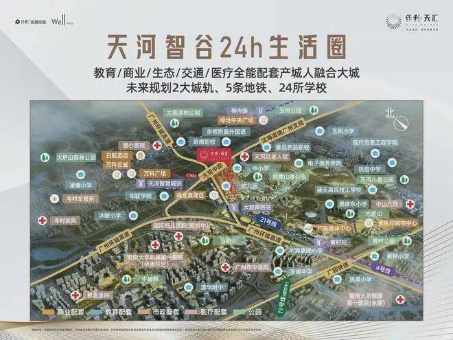 保利天汇的交通配套十分便捷。项目距离21号线大观南路站约1.2公里,步行仅需15分钟,同时周边还有广深高速、广园快线、大观路以及在建的机场第二高速,自驾出行40分钟内可轻松到达各区中心。通过地铁去往城区中心也能控制在1小时以内,极大地便利了居民的出行。