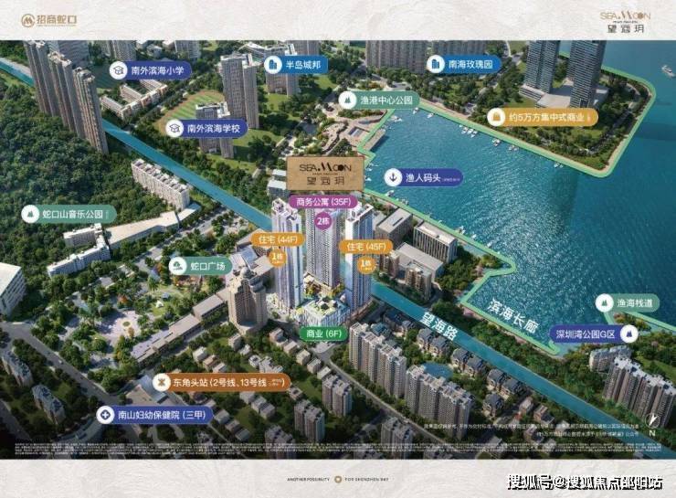 招商望海玥位于深圳市南山区蛇口新街与渔村路交汇处、距离地铁2/8号线东角头站267米;推出的是389套公寓产品、36--60平一至二房.