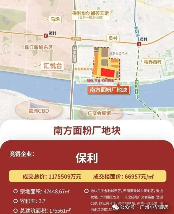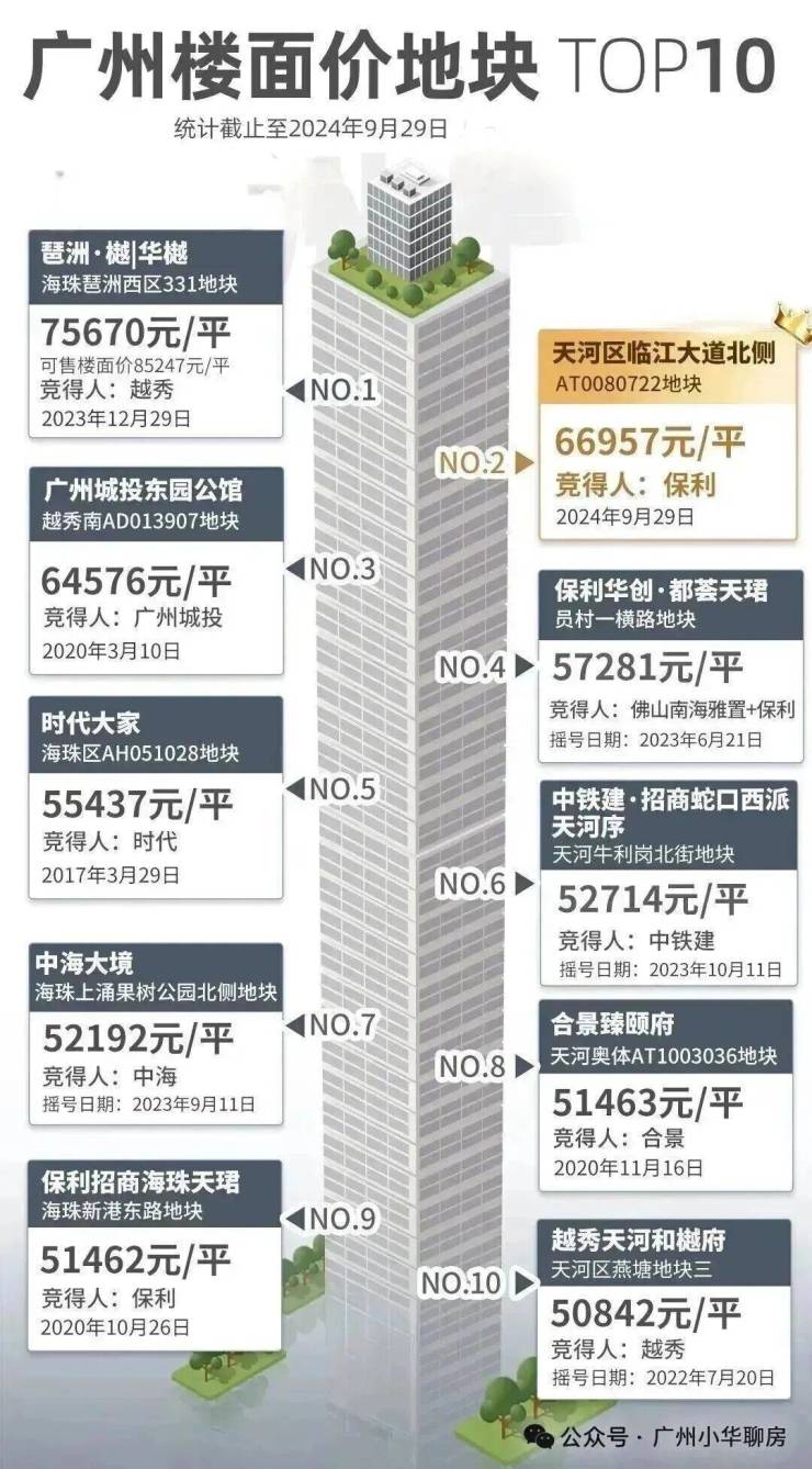 这也是继地价榜第四的员村一横路地块(现保利华创都荟天珺)后,保利在珠江新城再下一城,顺手创造了天河地王。
