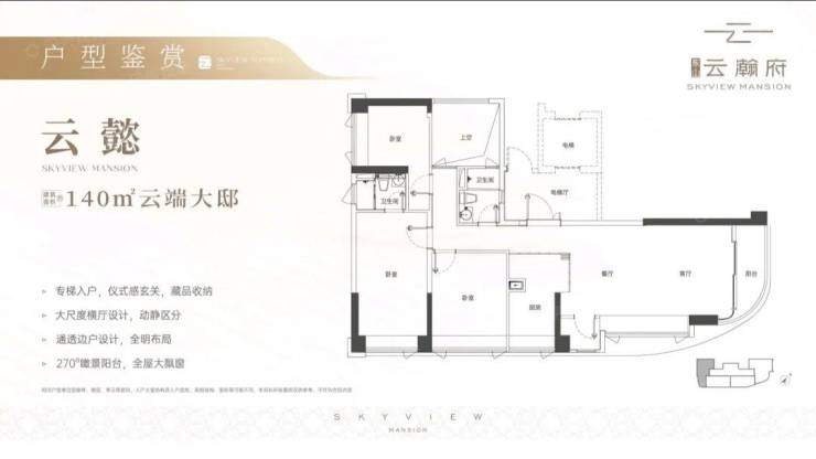 140㎡南向4房2厅2卫:六开间超南,超17米南向面宽,四面采光单边户。