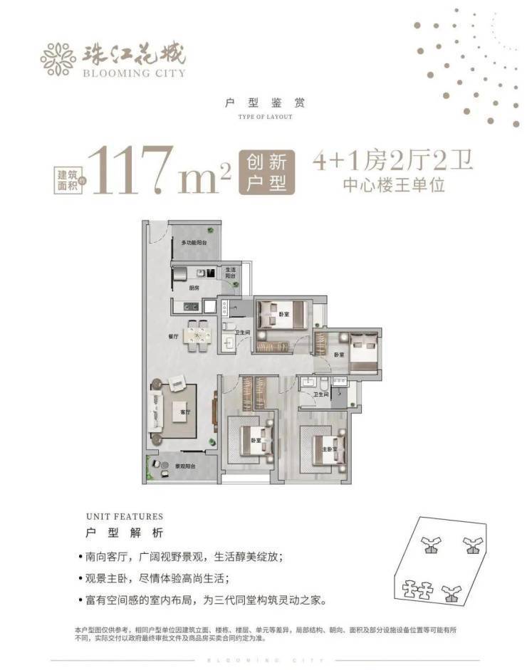 社区内将建4500㎡大型私享公交总站,为版块内最大的社区旗舰型交通配套,项目产品为约70-140㎡“2+1至5房”夺金户型,超87%实用率,比同面积产品多一个房间。