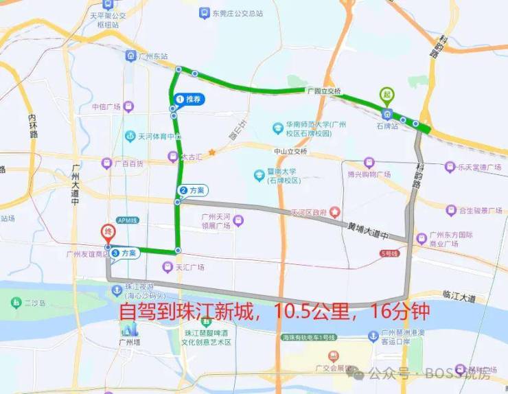 下面测评到珠江新城,金融城和琶洲的自驾时间,看看究竟有多方便吧!
