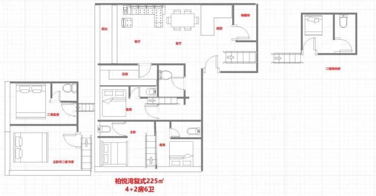 225㎡4+2房6卫
