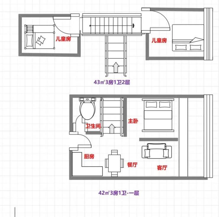 42㎡3房1卫户型图
