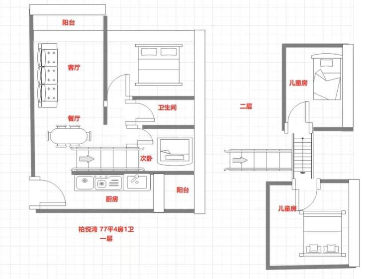 77㎡4房1卫