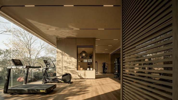 超7米层高,改造为双层立体空间,带下层庭院,成为家庭的“第二会所”,茶室、影音室、酒窖、健身房、收藏馆、儿童游乐区均可定制